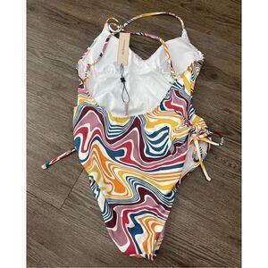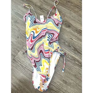 NEW with tags! BCBGeneration women’s wrap bathing suit in High Voltage Multi print. This bright and fun cosmic adjustable one piece swimsuit is perfect for any closet. Fashioned with a stretchy blend for tummy control and removable soft cups. Flattering for all bodies! This unique and stylish suit is perfect for a day at the pool or beach! You'll want to wear it all the time! 85% Nylon, 15% Spandex. Women’s size Large (see size chart).