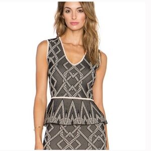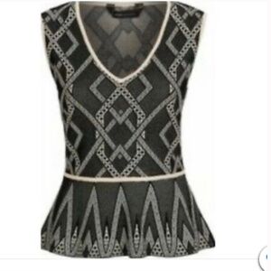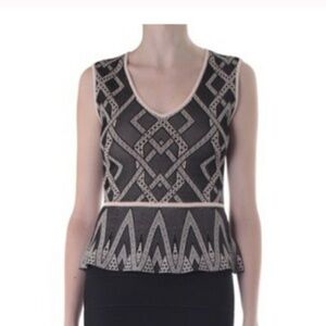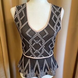 BCBG Maxazria Alonya Black/Beige Sleeveless knit Peplum V Neck Top Size Small