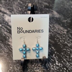 NEW BRAND NO BOUNDARIES WESTERN JEWELRY BOHO VINTAGE EARRINGS COLOR TURQUOIS &SILVER bring some bold dynamic style to your No western style wardrobe would be complete without a statement pair of turquoise earrings the Natural howlite stones is set in silver bezels and twist wire in cross shape that shines with every turn of the head and featuring a French Hook design for ease of wear and maximum dangle ability. Boho chic is easy with these western earrings stunning comfortable vintage turquoise dangle earrings can be worn all day to dress up any outfit They look great dressed up, but are so stylish with a pair of jeans and casual shirt to help them stand Cowgirl chic western style turquoise drop dangle statement earrings,made of turquoise and zinc alloy, which are made of 100% handcraft by our workers.lightweight and comfortable to wear, it will not harm your ear and make you feel heavy when you wear this turquoise With their lovely color and precise cross design,these turquoise western jewelry for women perfect for special occasions and to dress up your everyday look.Prepare these boho earrings as a very meaningful gift for women,mother, daughter wife, friends on special days, such festivaThese stunning blue cross earrings add a touch of elegance to any outfit. Perfect for any occasion.THIS ITEMS IS BRAND NEW WITH TAG CHECK THE PICTURES