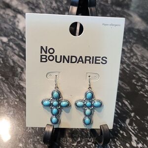 NEW BRAND NO BOUNDARIES WESTERN JEWELRY BOHO VINTAGE EARRINGS COLOR TURQUOIS &SILVER bring some bold dynamic style to your No western style wardrobe would be complete without a statement pair of turquoise earrings the Natural howlite stones is set in silver bezels and twist wire in cross shape that shines with every turn of the head and featuring a French Hook design for ease of wear and maximum dangle ability. Boho chic is easy with these western earrings stunning comfortable vintage turquoise dangle earrings can be worn all day to dress up any outfit They look great dressed up, but are so stylish with a pair of jeans and casual shirt to help them stand Cowgirl chic western style turquoise drop dangle statement earrings,made of turquoise and zinc alloy, which are made of 100% handcraft by our workers.lightweight and comfortable to wear, it will not harm your ear and make you feel heavy when you wear this turquoise With their lovely color and precise cross design,these turquoise western jewelry for women perfect for special occasions and to dress up your everyday look.Prepare these boho earrings as a very meaningful gift for women,mother, daughter wife, friends on special days, such festivaThese stunning blue cross earrings add a touch of elegance to any outfit. Perfect for any occasion.THIS ITEMS IS BRAND NEW WITH TAG CHECK THE PICTURES