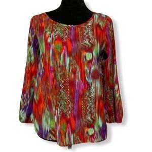 NEWBURY Kuston abstract top long sleeves keyhole size small