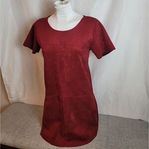 Beautiful red dress by Newbury Kustom. Velvet texture and short sleeved,