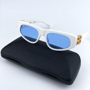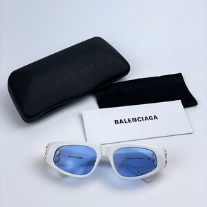 NEW Balenciaga BB0095S 004 White Gold Logo Light Blue Cat Eye Unisex Sunglasses