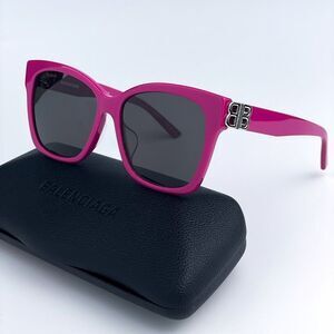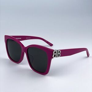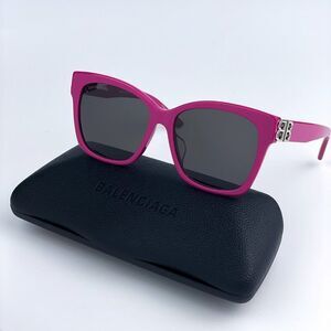 NEW Balenciaga BB0102SA 013 Fuchsia Pink Grey Square Women Sunglasses