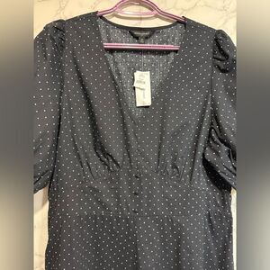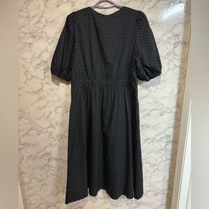 NEW Banana Republic Size 14 Black Dress White Polka Dots Puff Sleeve V-Neck
