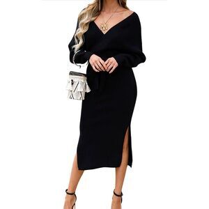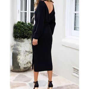 NEW Batwing Sleeve Wrap Knit Backless Pullover Sweater Belted Dress S