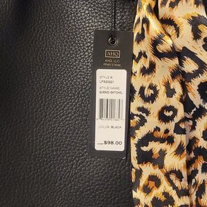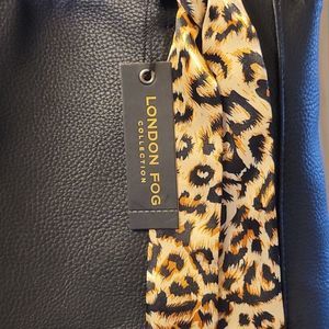 NEW Black London Fog Quendi Satchel w/ Leopard Print Twilly