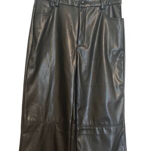*NEW* Black Zip Fly Faux Leather Flat Front Wide Straight Leg Pants Ladies Small