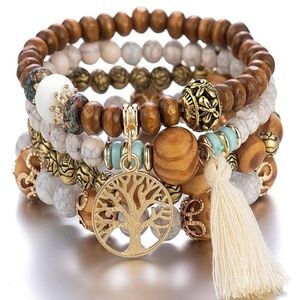 NEW‼️Bohemian Wooden Bead Bracelet Set with Gold Accents (4PCS)