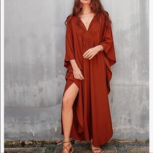 NEW Burnt Orange Batwing Sleeve Kaftan Cover Up