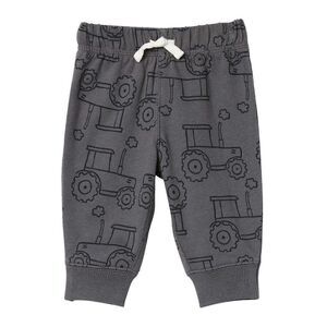 * Dark gray jogger pant includes; all over tractor print, elastic waistband and faux drawstring