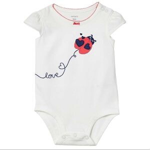 1 White bodysuit includes;red bow at collar, ladybug graphic at chest