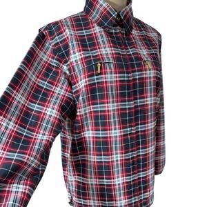 Embrace the sea breeze with the "CATALINA" Women's Plaid Zip Up Windbreaker, a must-have for your nautical wardrobe. This chic red jacket, sized small, is crafted from durable nylon, ensuring both comfort and longevity. Its classic plaid pattern adds a touch of timeless style, while the windbreaker design offers practicality for sailing or boating adventures. With a nod to coastal fashion, this piece features a versatile look that can transition from a brisk day on the water to a casual evening out. The jacket's regular size type ensures a flattering fit, and the thoughtful details reflect Catalina's commitment to quality. Whether you're enjoying the ocean's charm or just love the nautical theme, this windbreaker is a stylish addition to any outfit...26"T x 23"W x 23.5"Arm