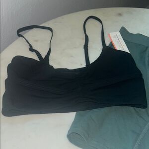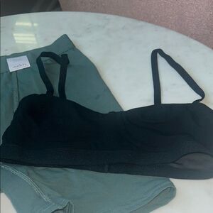 Stylish black bras with comfortable green boy-shorts. Perfect for everyday wear.