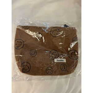 NEW Cosmetic Bags Corduroy Makeup Bag Smile Dots Brown W/ Charms