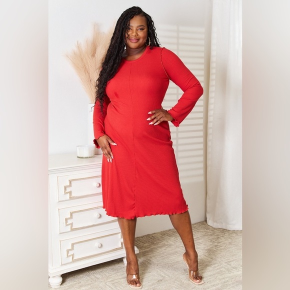 NEW**-Culture Code Full Size Round Neck Long Sleeve Dress OFFERS WELCOME