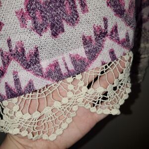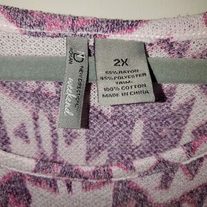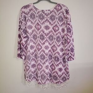 NEW DIRECTIONS WEEDEND PINK PURPLE AZTEC PRINT AND LACE TOP SIZE 2X