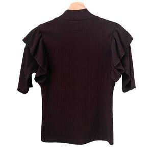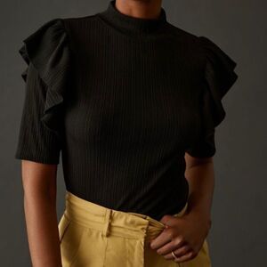 NEW DOLAN x Anthropologie Ruffled Mock Neck Blouse in Black Size Small
