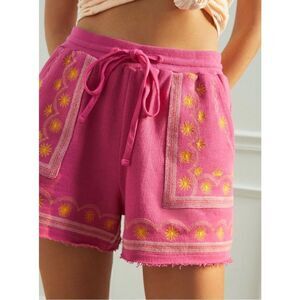 NEW Daily Practice Anthropologie Marka Pink Pull-On Embroidered Shorts X-Small