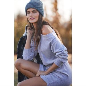 NEW Daily Practice Anthropologie Off-The-Shoulder Gray Velvet Mini Dress Large