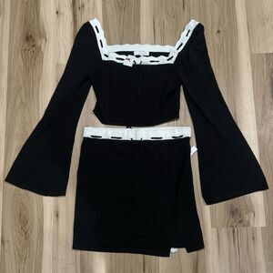 NEW Dee Elly Scalloped Hem Black Cropped Sweater Skirt Set Women’s Large