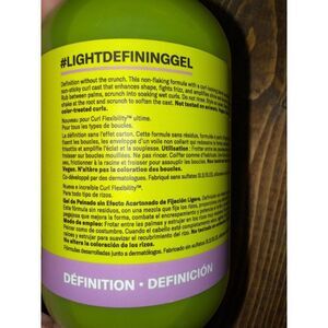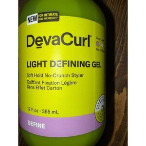 DevaCurl's Light Defining Gel Soft Hold No-Crunch Styler transforms curls with its unique, non-sticky formula. Enriched with wheat and soy proteins, it creates a light curl cast to enhance shape, fight frizz, and boost shine.