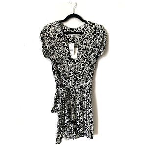 Brand New! DIANE VON FURSTENBERG Purdette Black Halo Petals Floral Cap Sleeve Romper.