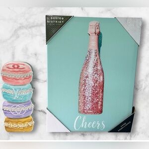 NEW!District Cheers Canvas Art - Chanel Pink & Green Wine Bottle-Wood Doughnut
