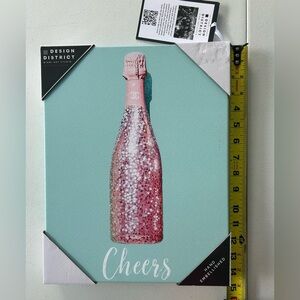 Celebrate in style with the District Cheers Canvas Art. Featuring a sparkling pink champagne bottle on a vibrant green background, this piece adds a festive touch to any party decor.