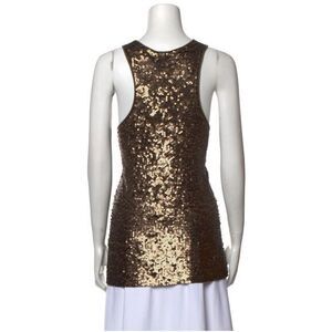 Donna Karan quality and luxury in a catch-the-eye top. Enjoy the delightful feel of cashmere next to your skin while the light catches a flash of sequins. Pair with white jeans and sandals for that beach party or dress it up with a skirt, jacket and flats/heels for something more elegant. And if you've got some show-off tattos on the arms/shoulders, this is the top to complement them.