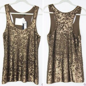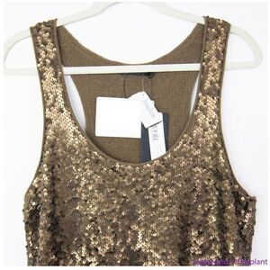 NEW Donna Karan Cashmere Sequin Scoop Neck Top, Brown, Medium