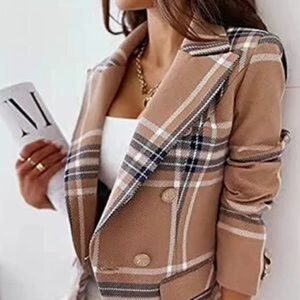 NEW Double Breasted Plaid Blazer Jacket Coat
