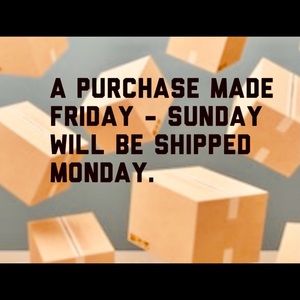 Orders on Friday, Saturday, Sunday or holiday ship next business day. Please ask pertinent questions before purchasing..such as size, material, color, etc.