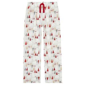 * Bottom: straight leg pant with red non-functional drawstring and all over bear and tree print