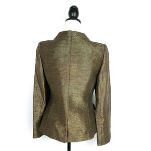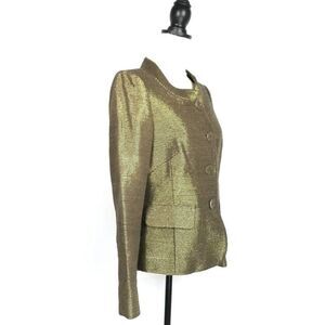 Ellen Tracy Mahogany Gold Metallic Stripe Texture Silk Blend Jacket