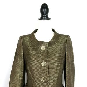 NEW Ellen Tracy Mahogany Gold Metallic Stripe Texture Silk Blend Jacket Size 4