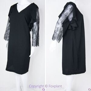 NEW Eloquii black lace long sleeves ruffle dress, size 14