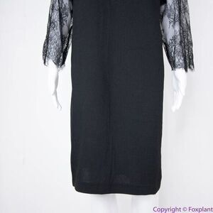 NEW Eloquii black lace long sleeves ruffle V neck midi dress, size 14