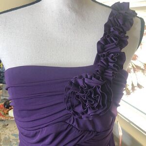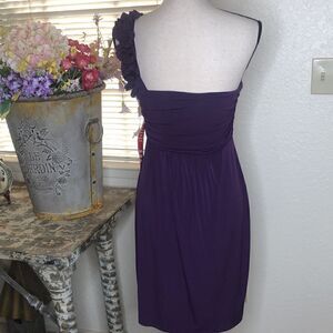 Darling cocktail dress in a yummy deep purple. Extremely flattering design and fit. Plenty of stretch and tricks to hide any flaws. In new condition.