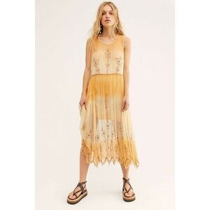 NEW WITHOUT TAG FREE PEOPLE Sz M TWILIGHT EMBELLISHED EMBROIDERED TIE DYE MIDI DRESS