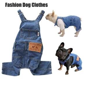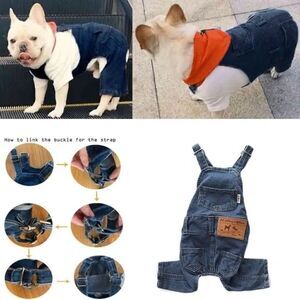 NEW! Fashion Dog Denim Overalls Blue Jeans Puppy Clothes Designer Stonewashed