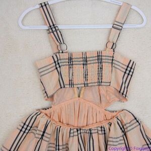 NEW Free People Bridget Mini Dress plaid, smocked split open back, S