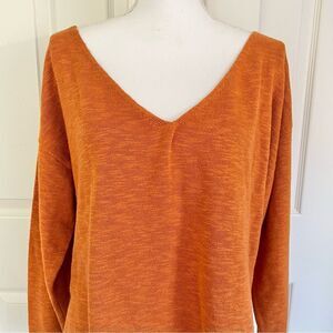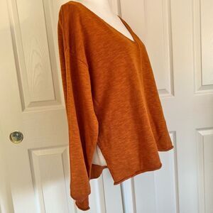 NEW Free People FP Beach Cotton Linen Blend Knit Sweater Rust Orange Small