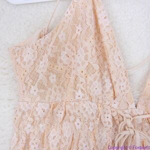 Forever femme and flirty, this so special romper is featured in a lovely, lace-adorned fabrication with strappy neckline and tiered, ruffled silhouette for an effortless, done-in-one look no matter the occasion.