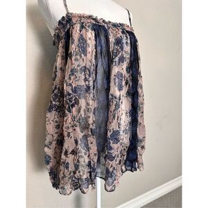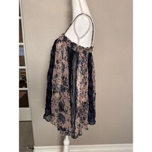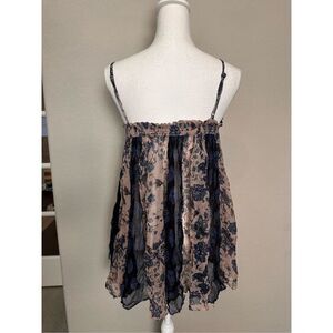 NEW Free People Secret Love Blue Cream Sheer Tank top Small beautiful unique boho hippie festival shirt. Oversized