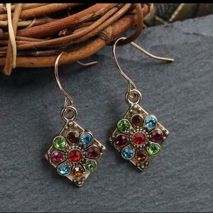 Brand new earrings with a vintage feel. The different colors of the crystals makes this fun and flirty. This can also be worn everyday. It will make a great gift as well.