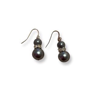 Very elegant and classy faux gray pearl and rhinestone dangle earrings. They are gorgeous. The drop is 1” long. 4