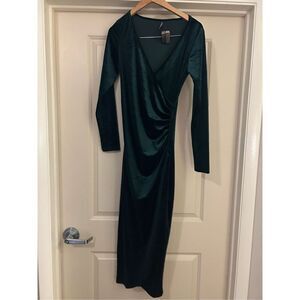 NEW Green V Neck Wrap Velvet Maxi Dress Bodycon M