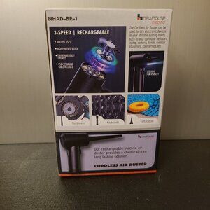The Newhouse Electric Cordless Compressed Air Duster (NHAD-BR-001) is a rechargeable, 3-speed handheld blower designed to replace disposable canned air.