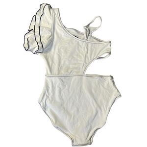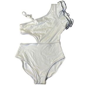 NEW Habitual Girl Ruffle One Shoulder Swimsuit White 14